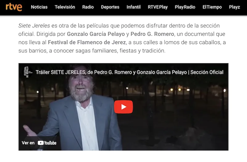 Siete Jereles es otra de las películas que podemos disfrutar dentro de la sección oficial. Dirigida por Gonzalo García Pelayo y Pedro G. Romero, un documental que nos lleva al Festival de Flamenco de Jerez, a sus calles a lomos de sus caballos, a sus barrios, a conocer sagas familiares, fiestas y tradición.