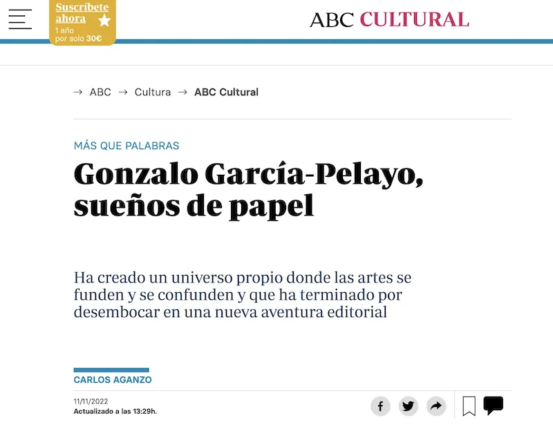 «Mas que palabras» artículo de ABC sobre Gonzalo García-Pelayo